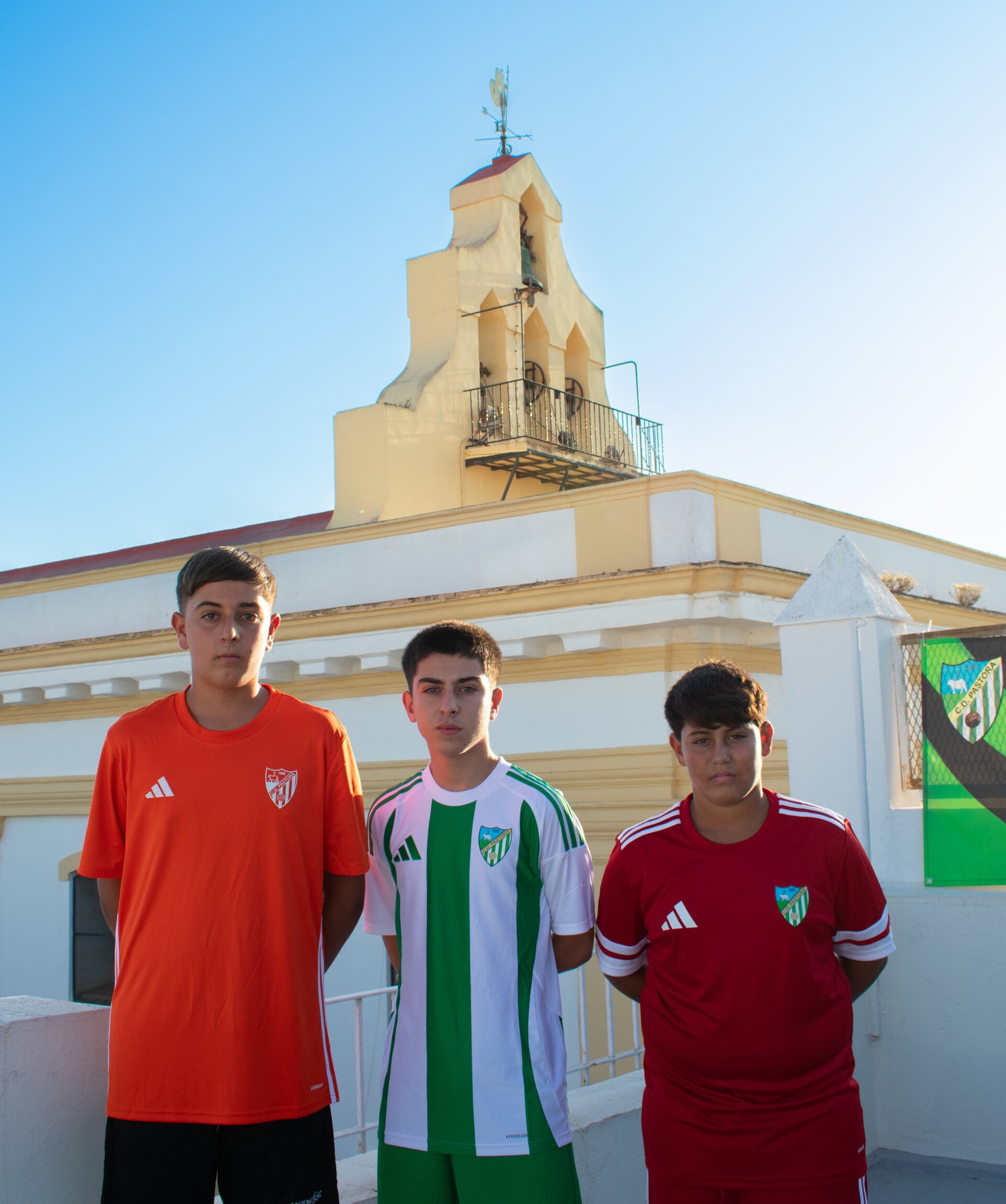 Sesión Fotográfica realizada el día 14 de julio en la azotea de la casa de Hermandad de Ntra. Sra. la Virgen de la Pastora, desde donde se puede contemplar el campanario de la Parroquia del Barrio de La Pastora, lugar donde empezó a dar los primeros pasos nuestro Club en el año 1966.